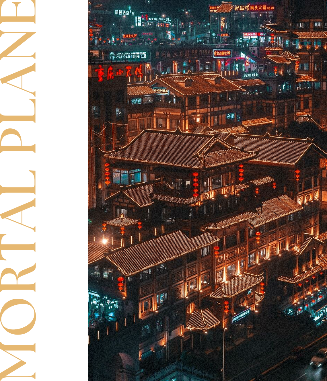 the Blossoming Temple is home to the shamans who have served the village and hosted the Triune Festival for millenia. The High Shaman Tak Yal scurries around the temple ground, frantically readying last minute preparations for the festivities.The surrounding land is divided into three major sectors, from which many mortals hail to make merry during the Triune Festival. Every sector has preserved traditional culture to an extent – this bleeds into everything from architecture to music to language. However, technological advancements are akin to that of the 21st century. In contrast to the spirits and the dead, mortals wear clothing that are traditional but have