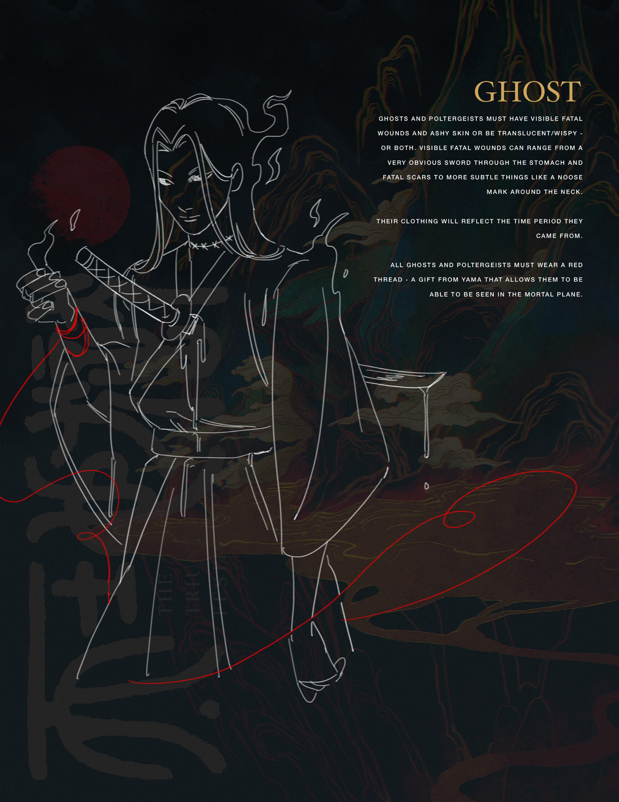 - Only the greatest of sins are punished with a death without a proper river burial. Those who were not granted a funeral are left wandering the mortal plane, loosely anchored to the place they met their end. They are burdened with knowledge and regrets of their past life, unable to rest, though their flesh lies still.- But not all those who wander in limbo are deserving of their fate- some have simply met an untimely end in a place noone can reach.- Backstory subject to increased scrutiny.
