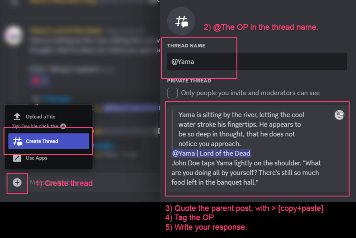 The Triune Festival is run through Discord. We will be using threads for one on one text RP sessions, and chains for one on one art RP sessions.